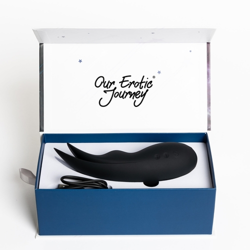 From the dark side of the moon there comes a creature that thrives on the darkest matter of the universe; your desire. Using sonic vibrations through its ears, this creature will melt all inhibitions and fill your dark voids with pleasure.As you hold this vibrating wonder in your hand, the clitoral tips move in perfect opposition, giving you a one-of-a-kind sensation that surpasses all other clitoral toys in the market. Experience the power and thrill of this exclusive design!